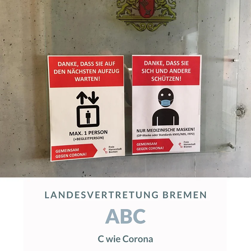 Das Tragen medizinischer Masken ist bei uns Pflicht. Die AHA-und CL-Regeln sind gelebte Praxis. Desinfektionsspender stehen bereit und Gäste haben ihre Anwesenheit im Haus zu dokumentieren. Ausschusssitzungen in Bundesrat und Bundestag sowie Besprechungen im Rahmen der Bundesgesetzgebung und Interessenvertretung Bremens finden grundsätzlich digital statt. Mit großer Flexibilität und technischer Anpassungsfähigkeit wurden die Umstellungen von den involvierten Institutionen und Mitarbeiter:innen des Bevollmächtigten gemeistert.
