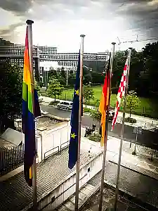 Das Bundesland Bremen unterstützt die „Ehe für alle“ und setzt mit der gehissten Regenbogenfahne an der Landesvertretung Bremen in Berlin ein Zeichen für die Gleichstellung homosexueller Paare.