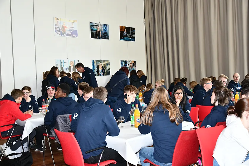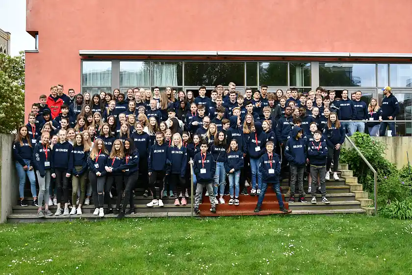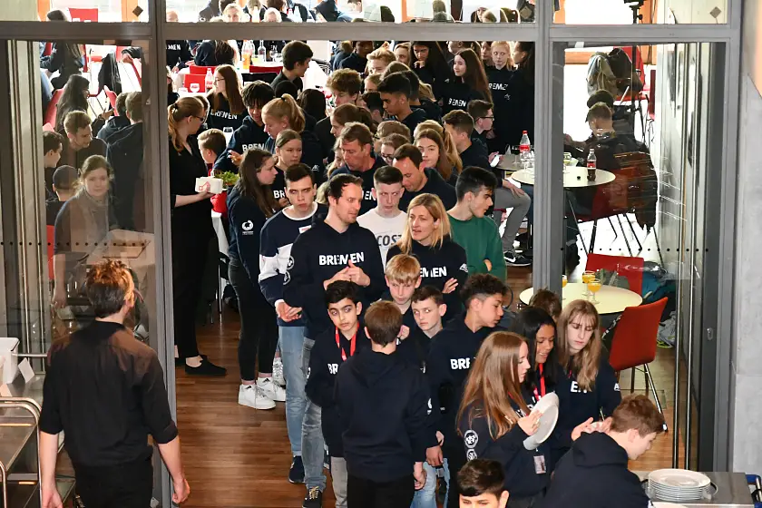 Stärkung für die letzten Meter: In der Berliner Landesvertretung empfing die Bevollmächtigte Bremens beim Bund, für Europa und Entwicklungszusammenarbeit, Staatsrätin Ulrike Hiller, an diesem Freitag (10.05.2019) das bremische Team des Bundesfinales "Jugend trainiert für Olympia & Paralympics". Die rund 200 Kinder und Jugendlichen aus neun Schulen in Bremen und Bremerhaven berichteten von ihren Wettkampferfolgen beim bundesweiten Schulwettbewerb, der in diesem Jahr bereits zum 50. Mal stattfindet.