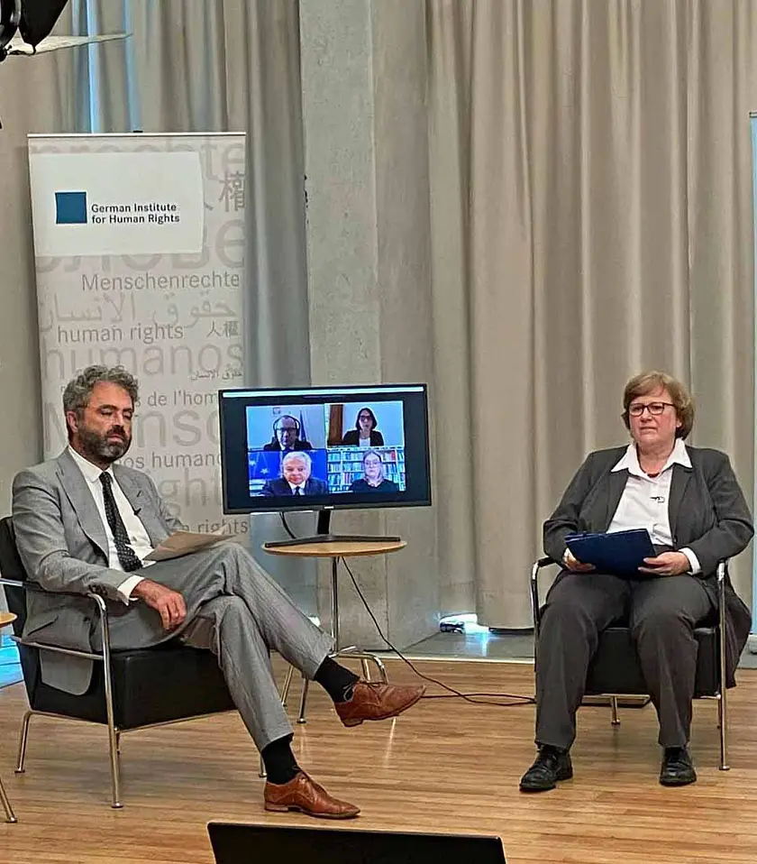Nach der Eröffnung der Konferenz durch Michael Windfuhr, Stellvertretender Direktor des Deutschen Instituts für Menschenrechte und Dr. habil. Maciej Taborowski, Stellvertretender Ombudsmann der Republik Polen für Bürger- und Menschenrechte, wurde die Diskussion über die Bedeutung der Unabhängigkeit der Justiz anhand von Impulsreferaten von Prof. Dr. habil. Malgorzata Gersdorf (ehemalige Präsidentin des polnischen Obersten Gerichts) und Dr. Ulrich Maidowski (Richter des deutschen Bundesverfassungsgerichts) eröffnet. Am Bespiel Polens und des Angriffes auf die Unabhängigkeit der Richter_innen entstand eine rege Debatte zwischen Prof. Dr. habil. Wlodzimierz Wróbel (Richter des polnischen Obersten Gerichts) und Prof. Dr. Angelika Nußberger (Mitglied der Venedig-Kommission, ehemalige Vizepräsidentin des Europäischen Gerichtshofs für Menschenrechte; Richterin am Verfassungsgericht von Bosnien und Herzegowina) , die von Prof. Dr. Armin von Bogdandy (Direktor des Max-Planck-Instituts für ausländisches öffentliches Recht und Völkerrecht) moderiert wurde.
